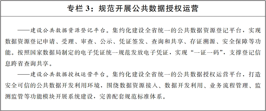 (一)工作目標。2025年,全省公共數據資源開發利用制度規則逐步建立,公共數據資源登記、授權運營平臺基本建成,資源供給規模和質量明顯提升,數據產品和服務不斷豐富,公共數據資源開發利用取得初步成效,培育形成一批生態引領型數據龍頭企業和專精特新企業,數據要素作用初步顯現。到2030年,全省公共數據資源開發利用制度規則更加成熟,資源開發利用體系全面建成,數據供給規模進一步擴大,數據流通使用合規高效,公共數據在賦能實體經濟、擴大消費需求、拓展投資空間、提升治理能力中的要素作用充分發揮。